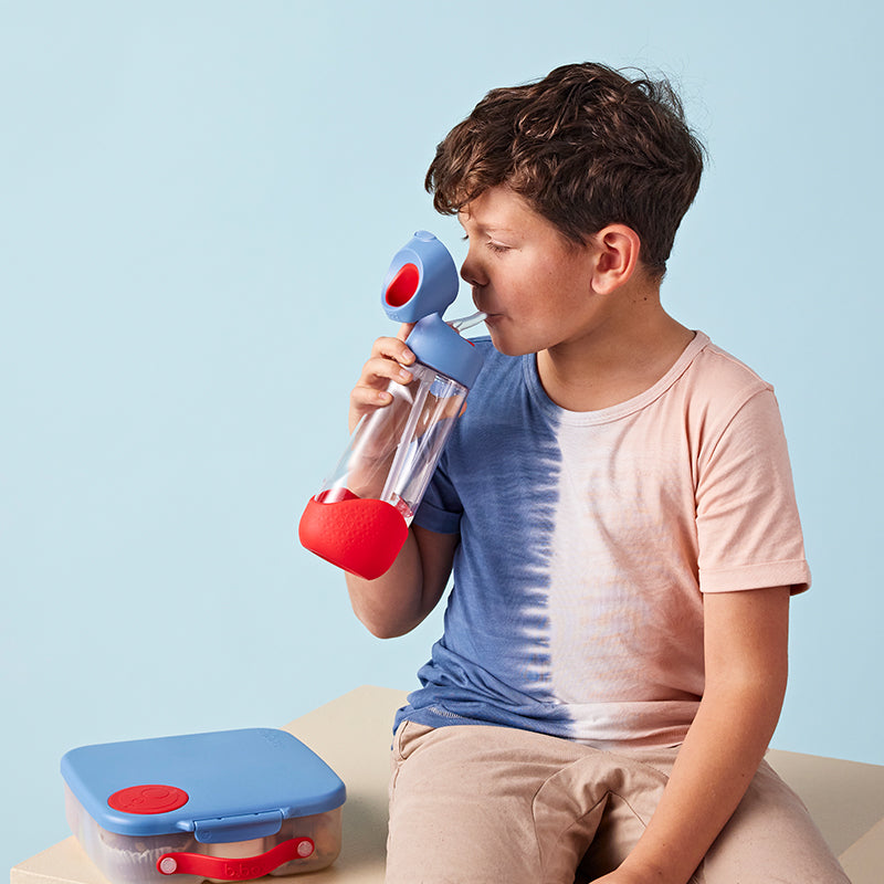 Unsere einzigartige 600-ml-Trinkflasche für große Kinder ist ideal für Kindergarten- und Schulkinder. Die einzigartige dreieckige Form ist speziell für kleine Hände konzipiert und erleichtert Kindern das Greifen. Besser für Schulkinder geeignet – diese größere 600-ml-Flasche ist gefüllt etwas schwerer als unsere 450-ml-Flasche.