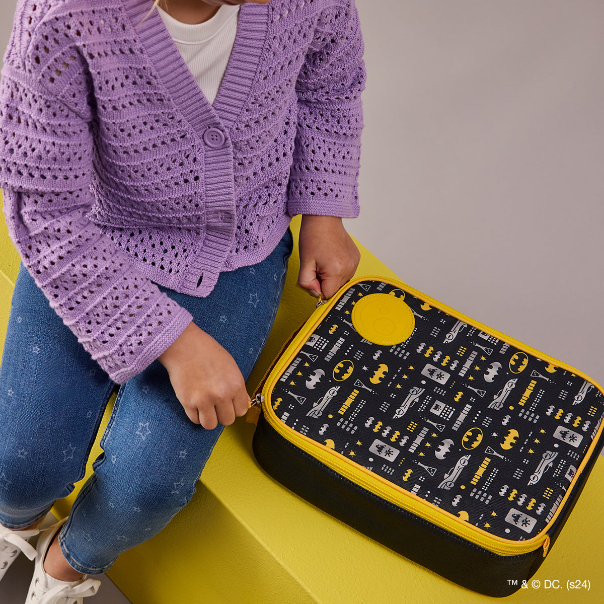 BÄM! Wenn zur Mittagszeit ein Superheld benötigt wird, rettet Batman den Tag mit vom Caped Crusader inspiriertem Mittagessen- und Trinkzubehör. So sind die Kinder für den Spielplatz gestärkt!