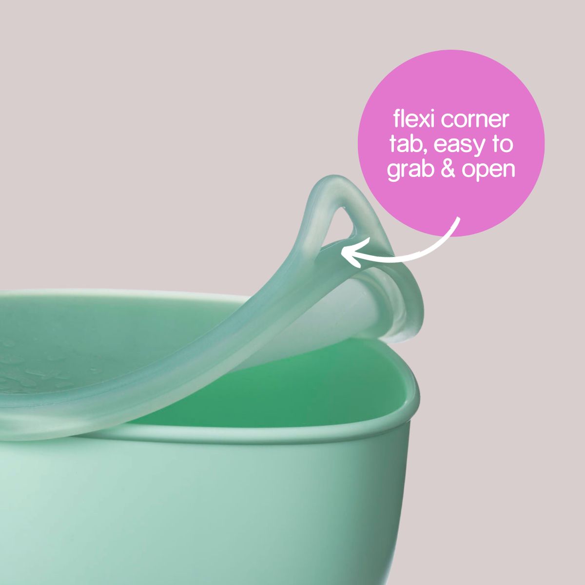 • Flexible Ecklasche erleichtert das Herausnehmen aus der Lunchbox und das Öffnen des Deckels