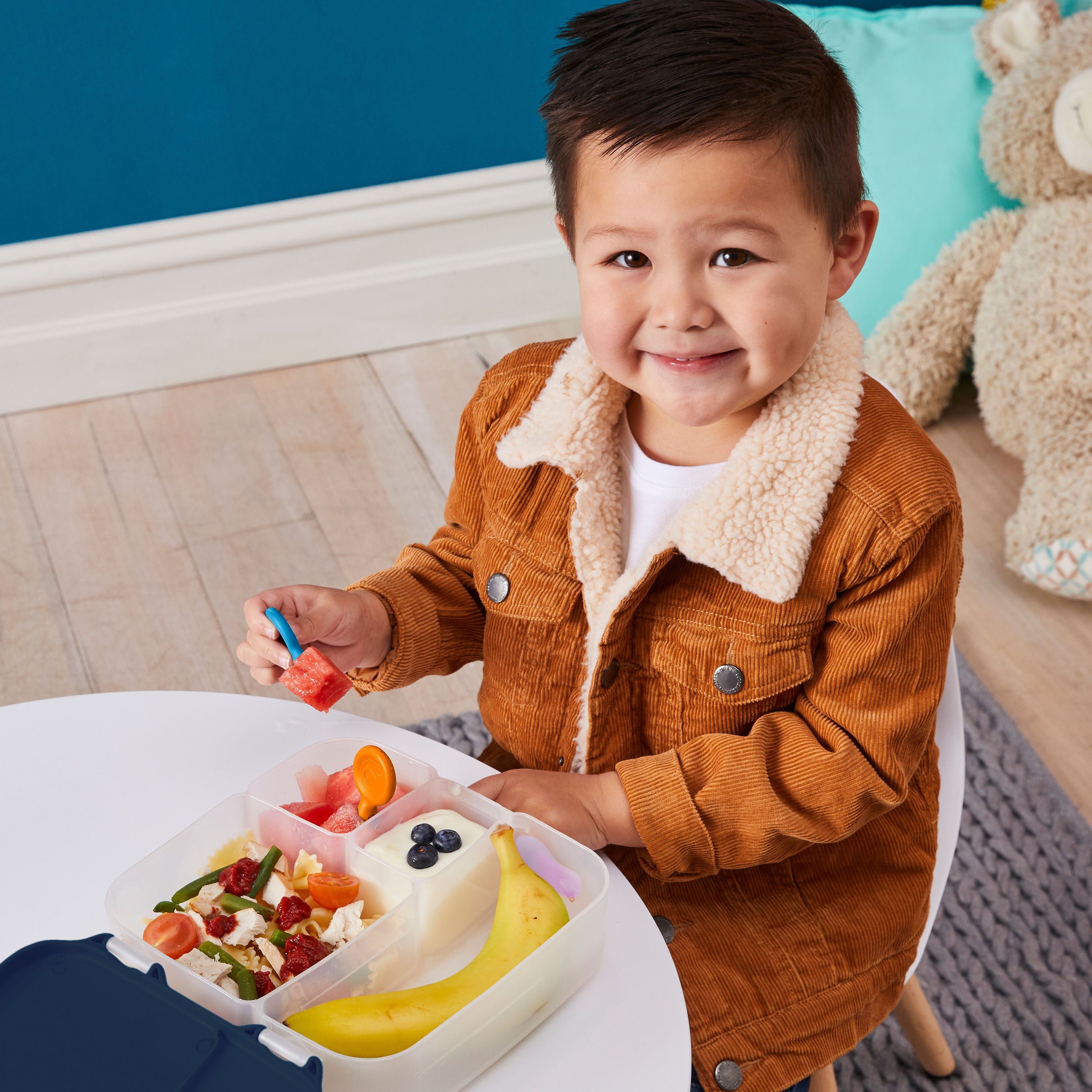 Schluss mit dem lästigen Zerschneiden von Lebensmitteln in kleine Fächer – jetzt mit der originalen Vollwert-Lunchbox, die Kinder den ganzen Tag über mit Energie versorgt. Mit unserem einzigartigen dehnbaren und flexiblen Obstfach, dem großen Sandwichfach und den auslaufsicheren Fächern haben Kinder mehr Auswahl beim Mittagessen. Gestalten Sie Ihre Lunchbox individuell mit unserem Sortiment an Ergänzungen und Zubehör.