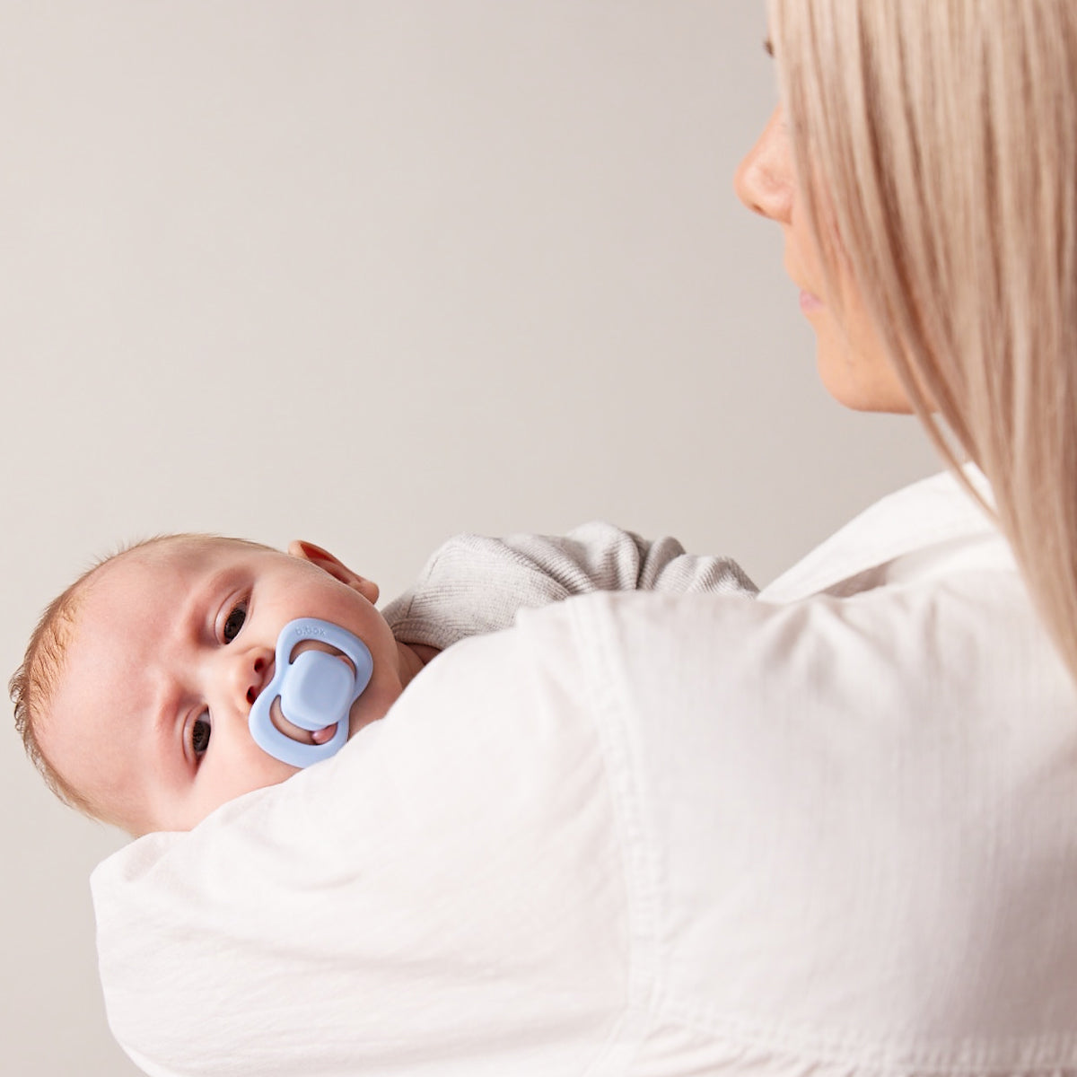 Zur Auswahl stehen ein intuitiver symmetrischer Sauger aus Silikon oder ein Sauger aus in Deutschland hergestelltem Naturlatex, jeweils in zwei Größen erhältlich, um Babys von Geburt an beruhigende Geborgenheit zu bieten.