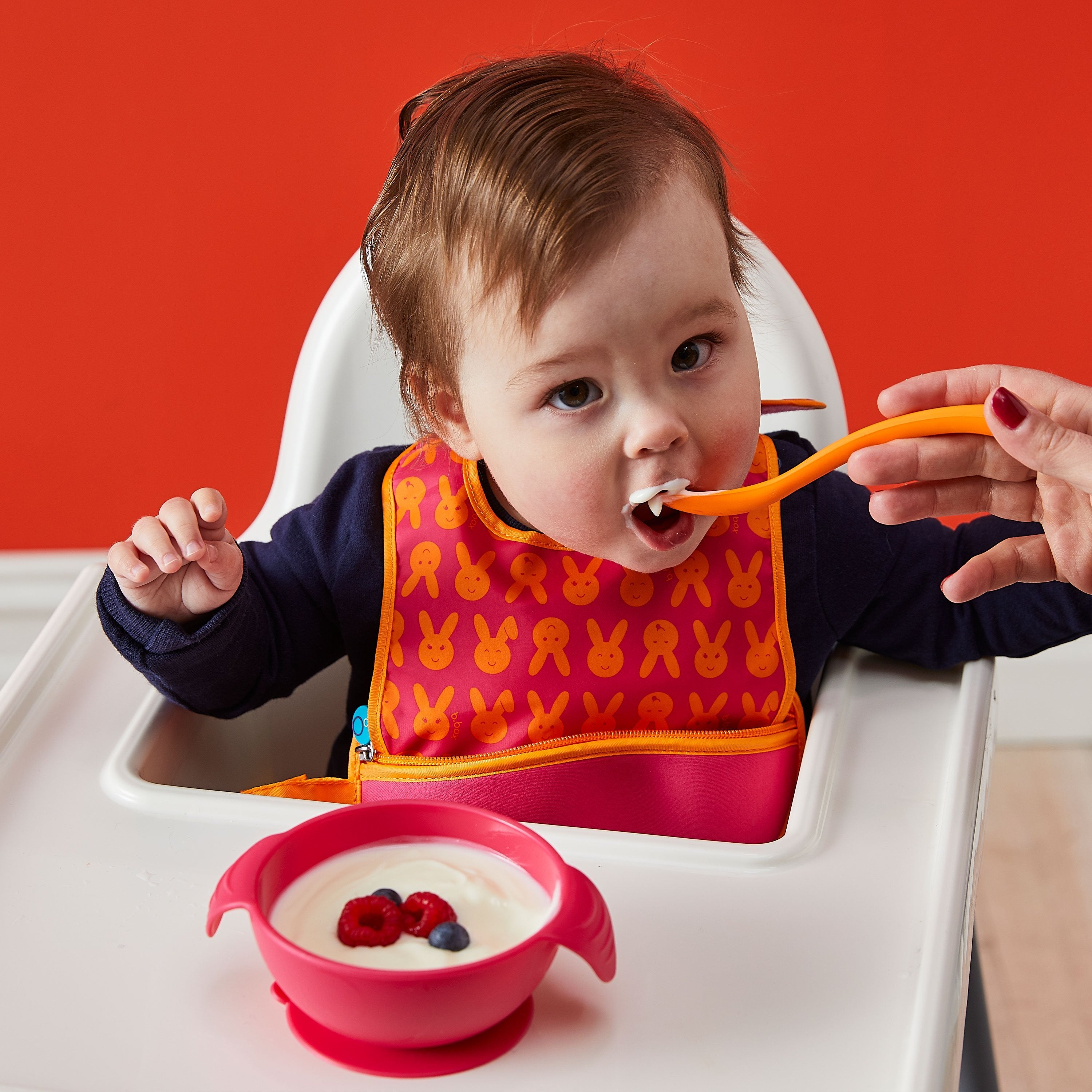 Wir alle wissen, dass Kleinkinder beim Essen manchmal etwas „extra aktiv“ sein können. Hier ist eine Lösung für weniger Hoppla und weniger Kleckern während dieser Zeiten. Wir präsentieren das erste Essset aus Silikon. Das Set enthält eine Silikonschüssel mit „Stay Suction“-Technologie, die den Boden an jeder glatten Oberfläche festhält – wie Hochstuhltabletts oder glatten Tischen – sodass Ihr Baby sie nicht mehr hochheben, umstoßen, fallen lassen oder werfen kann! Nie wieder vor einer herumfliegenden Schüssel Pasta ducken! Diese Silikonschüssel hat eine Super-Saugkraft, die dafür sorgt, dass die Schüssel an Ort und Stelle bleibt und selbst die energiegeladensten Kleinkinder vor eine Herausforderung stellt! Das Set enthält außerdem einen lebensmittelechten Silikonlöffel der FDA, der sanft zu Babys Zahnfleisch ist. Spülmaschinenfest (nur im oberen Fach). Erhältlich in 4 flippigen Farben.