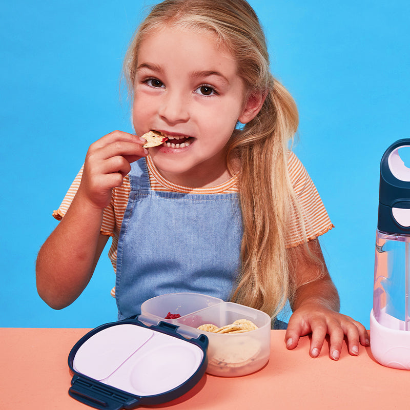 Mit unserer auslaufsicheren und vielseitigen Snackbox machen wir die Snackzeit einfach. Die perfekte Lösung für kleinere Portionen, damit die Kleinen satt bleiben, egal was der Tag bringt! Ideal für Kleinkinder-Snacks, Snacks für die Schule oder Denkpausen im Kindergarten.