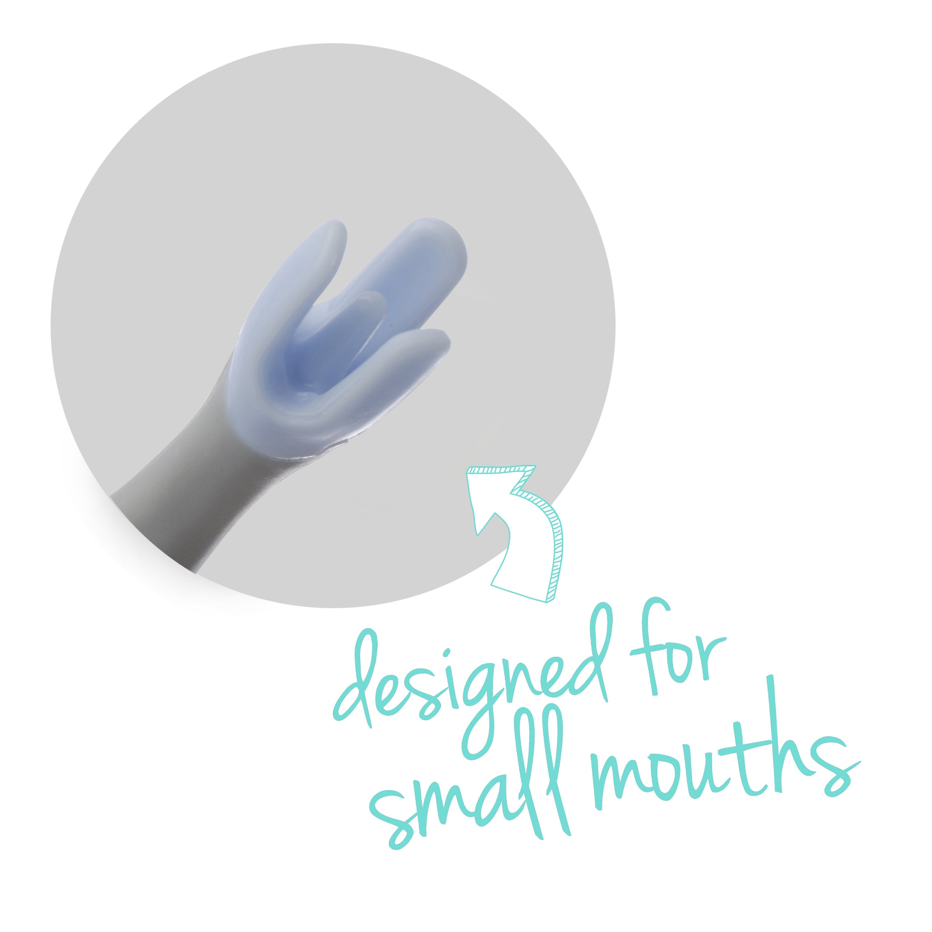 - Der große Löffelkopf ermöglicht Kindern das erfolgreiche Aufnehmen von Speisen