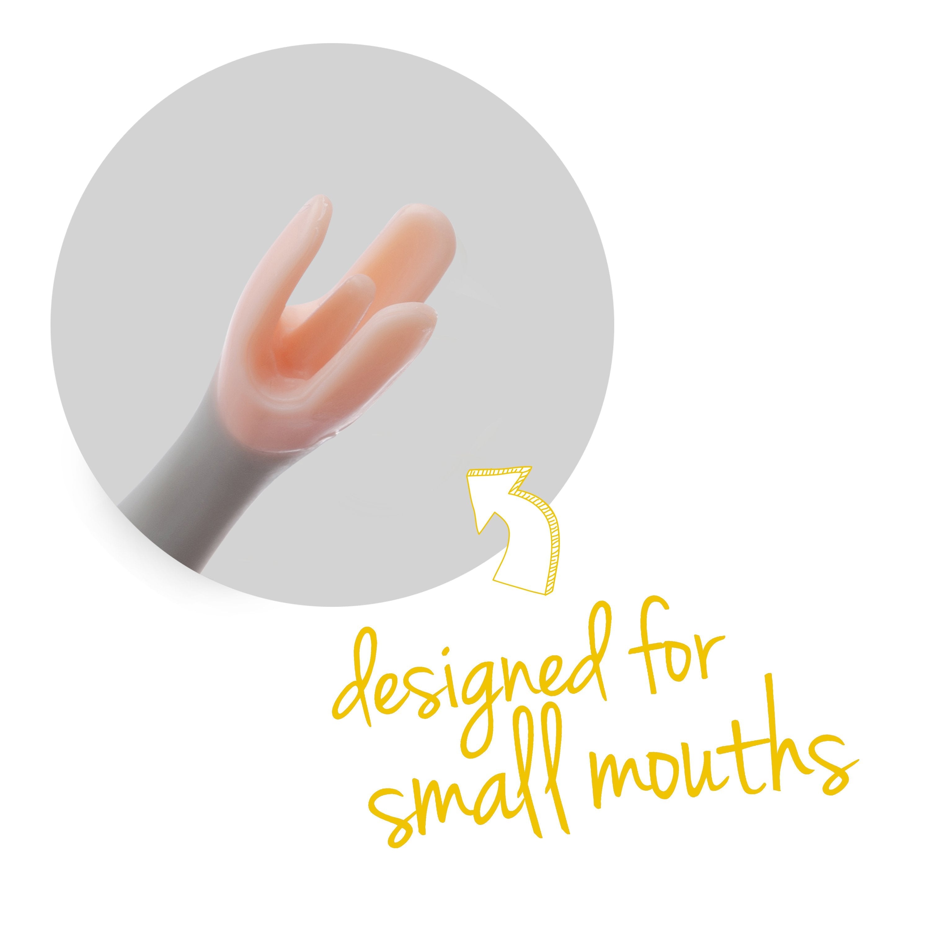 - Der große Löffelkopf ermöglicht Kindern das erfolgreiche Aufnehmen von Speisen